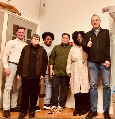 Diaconie hoort bij de kern van ons kerkzijn. We zijn daarom heel blij dat een nieuwe Diaconiegroep van start is gegaan; een team dat met open handen, een warm hart en stevige overtuiging klaar staat om het Evangelie tastbaar te maken. Niet alleen in woorden, maar ook in daden. Met diaken Ed Doe namens het pastorale team, Sherida namens het parochiebestuur en de leden Stephan, Marijke, Johan en Lisette. Een divers gezelschap qua leeftijd, achtergrond, talenten en levensverhaal, maar één in hun verlangen om te dienen. Ziet u nood bij mensen, geef het door aan een van hen. Wie weet kunnen ze er iets in betekenen. | |